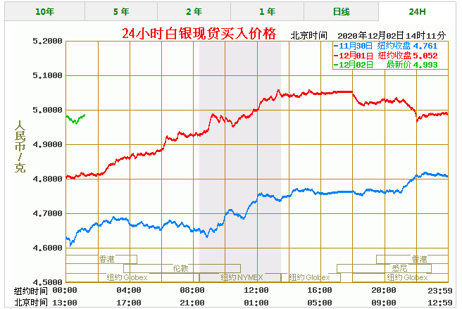 今日银价_今日白银价格走势图(2020年12月2日) 名称 最新价 最高价 最低价 买入价 卖出价 纸白银(美元) 23.68 23.98