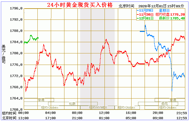 (2020年12月1日)国际黄金价格表 名称 最新价 涨跌 涨跌幅% 买价 卖价 开盘价 昨收价 最高价 最低价