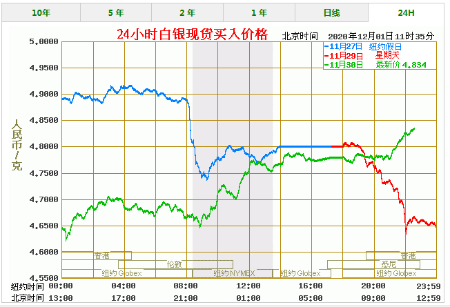 纸白银价格走势图实时(2020年12月1日) 名称 最新价 最高价 最低价 买入价 卖出价 纸白银(美元) 22.83 22.84