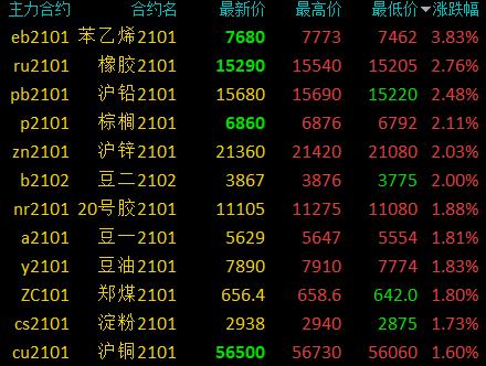 11月30日讯国内期货市场开盘,商品期货多数上涨,橡胶、苯乙烯涨逾4%,沪铅、沪锌涨逾2%,沪银跌逾3%,沪金跌近2%。