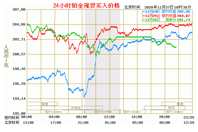铂金价格走势图今日最新铂金行情(2020年11月27日) 今日最新铂金行情:201.74 备注:以上铂金价格仅供参考,请以官方价格为准。