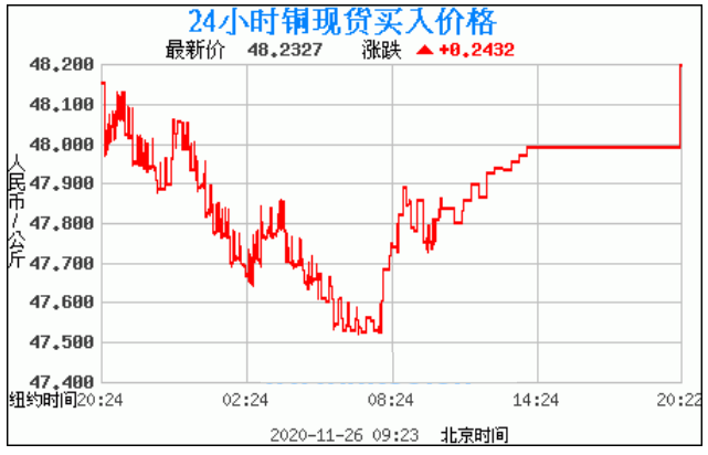 铜价格走势图今日最新铜价行情(2020年11月26日) 今日最新铜价:48.2327涨跌:0.2432 备注:以上铜价格仅供参考,请以官方价格为准。