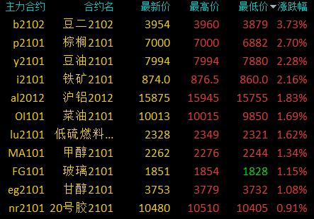 国内商品期货收盘,涨跌参半。跌超4%,沥青、苹果等跌超2%,沪镍、燃油等跌逾1%,焦煤、焦炭等小幅下跌;沪铝、等涨超2%,铁矿、塑料等涨超1%,鸡蛋、豆粕等小幅上涨