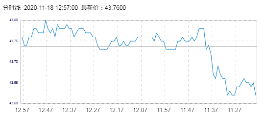 布伦特原油价格实时(2020年11月18日) 名称 最新价 涨跌 涨跌幅% 开盘价 昨收价 最高价 最低价 布伦特 43