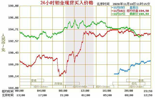 铂金价格走势图今日最新铂金行情(2020年11月18日) 今日最新铂金行情:193.53 备注:以上铂金价格仅供参考,请以官方价格为准。