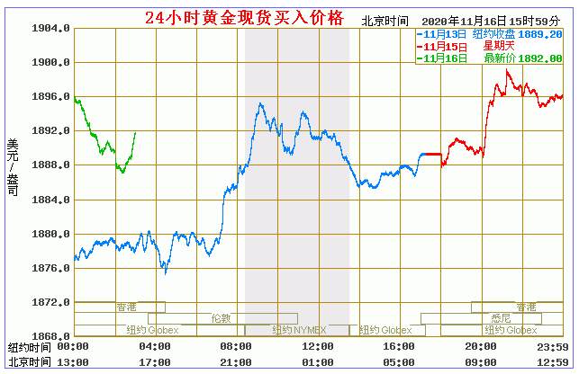 (2020年11月16日)国际黄金价格表 名称 最新价 涨跌 涨跌幅% 买价 卖价 开盘价 昨收价 最高价 最低价