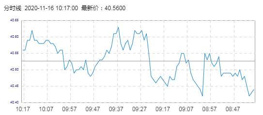 WTI原油价格实时(2020年11月16日) 名称 最新价 涨跌 涨跌幅% 开盘价 昨收价 最高价 最低价 WTI 40.58