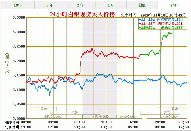 今日银价_今日白银价格走势图(2020年11月16日) 名称 最新价 最高价 最低价 买入价 卖出价 纸白银(美元) 24.95 24.97