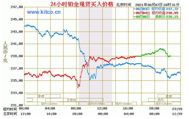 铂金价格走势图今日最新铂金行情(2021年6月7日) 今日最新铂金行情:239.15 备注:以上铂金价格仅供参考,请以官方价格为准。