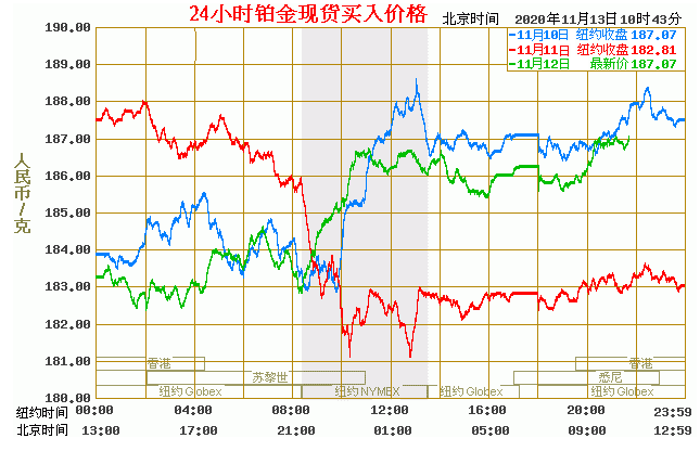 铂金价格走势图今日最新铂金行情(2020年11月13日) 今日最新铂金行情:187.87 备注:以上铂金价格仅供参考,请以官方价格为准。