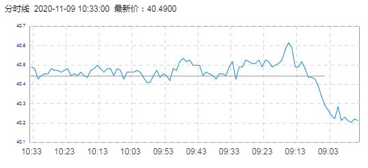 WTI原油价格实时(2020年11月9日) 名称 最新价 涨跌 涨跌幅% 开盘价 昨收价 最高价 最低价 WTI 38.18