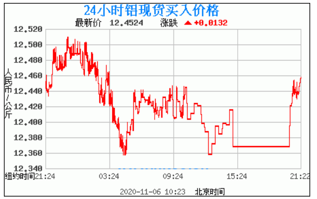 铝锭价格走势图今日最新铝锭行情(2020年11月6日) 今日最新铝锭行情:12.4524 备注:以上铝锭价格仅供参考,请以官方价格为准。