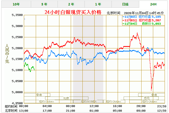 今日银价_今日白银价格走势图(2020年11月4日) 名称 最新价 最高价 最低价 买入价 卖出价 纸白银(美元) 23.66 24.39
