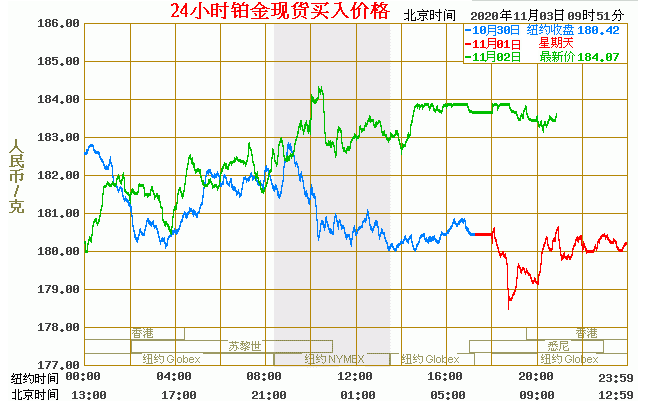 铂金价格走势图今日最新铂金行情(2020年11月3日) 今日最新铂金行情:184.07 备注:以上铂金价格仅供参考,请以官方价格为准。