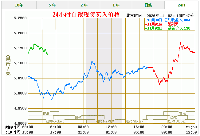 纸白银价格走势图实时(2020年11月2日) 名称 最新价 最高价 最低价 买入价 卖出价 纸白银(美元) 23.42 23.42
