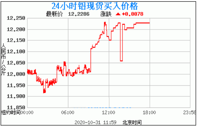 铝锭价格走势图今日最新铝锭行情(2020年11月2日) 今日最新铝锭行情:12.2286 备注:以上铝锭价格仅供参考,请以官方价格为准。