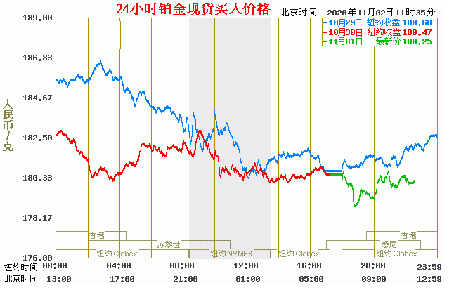 铂金价格走势图今日最新铂金行情(2020年11月2日) 今日最新铂金行情:180.25 备注:以上铂金价格仅供参考,请以官方价格为准。