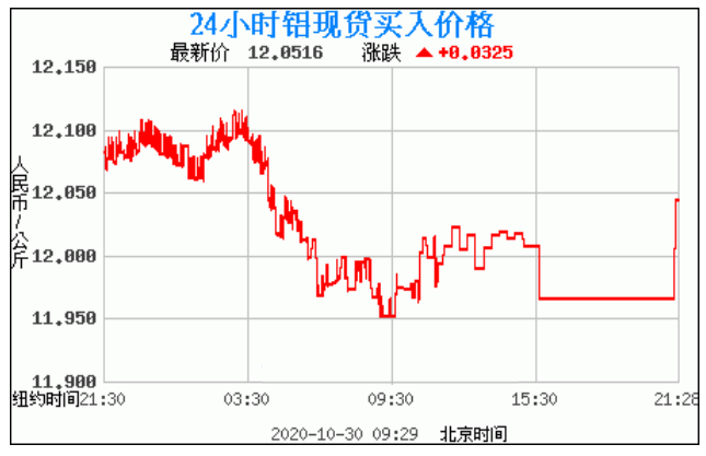 铝锭价格走势图今日最新铝锭行情(2020年10月30日) 今日最新铝锭行情:12.0516 备注:以上铝锭价格仅供参考,请以官方价格为准。