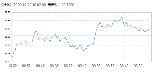 WTI原油价格实时(2020年10月28日) 名称 最新价 涨跌 涨跌幅% 开盘价 昨收价 最高价 最低价 WTI 38.73