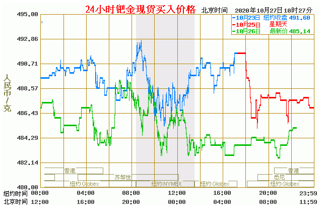 钯金价格走势图今日最新钯金行情(2020年10月27日) 今日最新钯金行情:485.14 备注:以上钯金价格仅供参考,请以官方价格为准。
