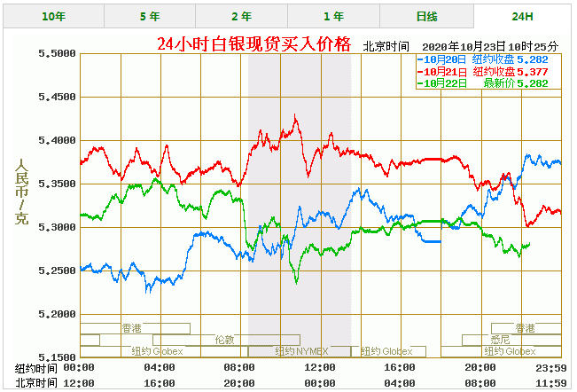纸白银价格走势图实时(2020年10月23日) 名称 最新价 最高价 最低价 买入价 卖出价 纸白银(美元) 24.56 24.70