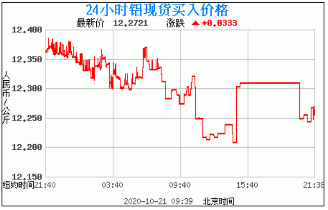 铝锭价格走势图今日最新铝锭行情(2020年10月21日) 今日最新铝锭行情:12.2721 备注:以上铝锭价格仅供参考,请以官方价格为准。