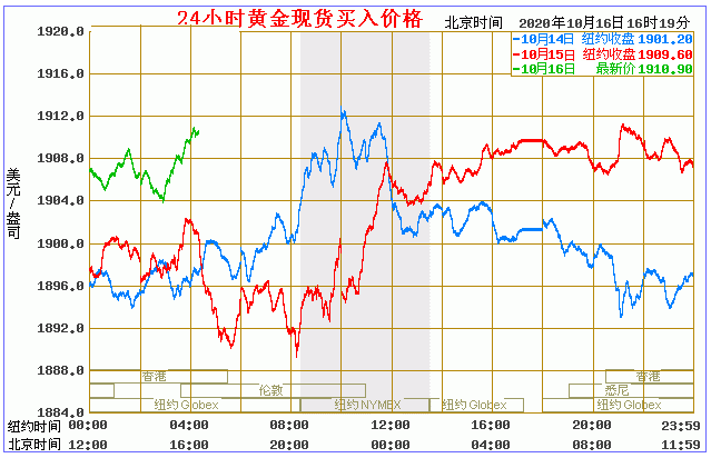 (2020年10月16日)国际黄金价格表 名称 最新价 涨跌 涨跌幅% 买价 卖价 开盘价 昨收价 最高价 最低价