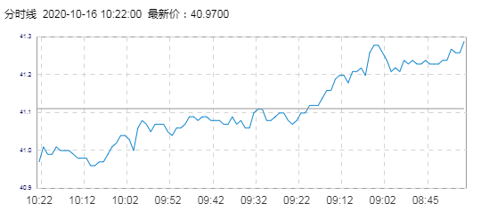 WTI原油价格实时(2020年10月16日) 名称 最新价 涨跌 涨跌幅% 开盘价 昨收价 最高价 最低价 WTI 40.97