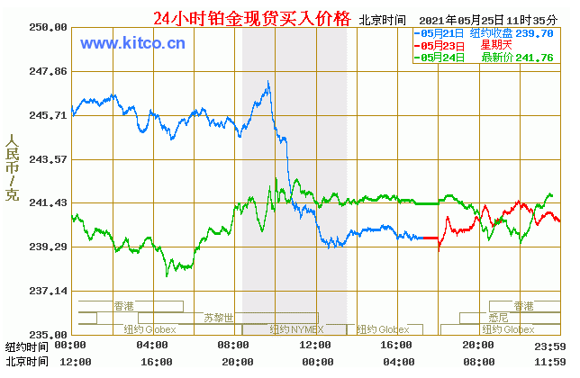 铂金价格走势图今日最新铂金行情(2021年5月25日) 今日最新铂金行情:241.76 备注:以上铂金价格仅供参考,请以官方价格为准。