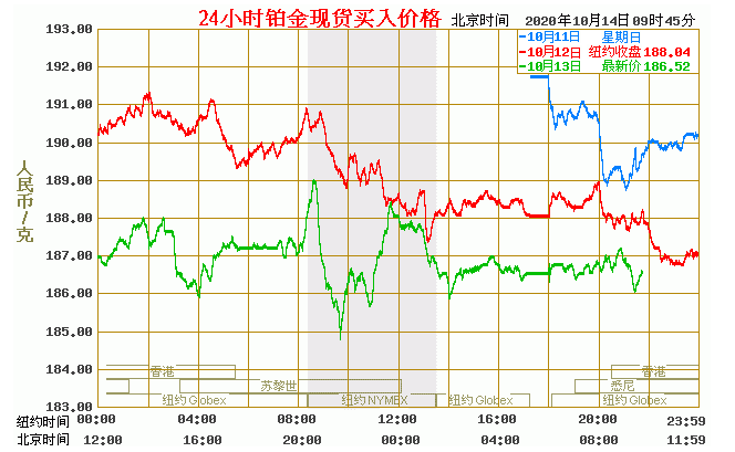 铂金价格走势图今日最新铂金行情(2020年10月14日) 今日最新铂金行情:186.52 备注:以上铂金价格仅供参考,请以官方价格为准。