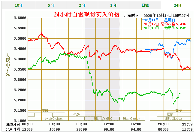 今日银价_今日白银价格走势图(2020年10月14日) 名称 最新价 最高价 最低价 买入价 卖出价 纸白银(美元) 24.07 24.20