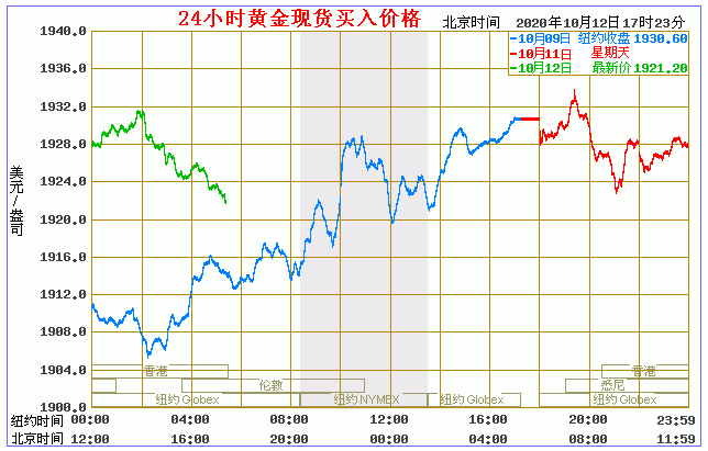 (2020年10月12日)国际黄金价格表 名称 最新价 涨跌 涨跌幅% 买价 卖价 开盘价 昨收价 最高价 最低价