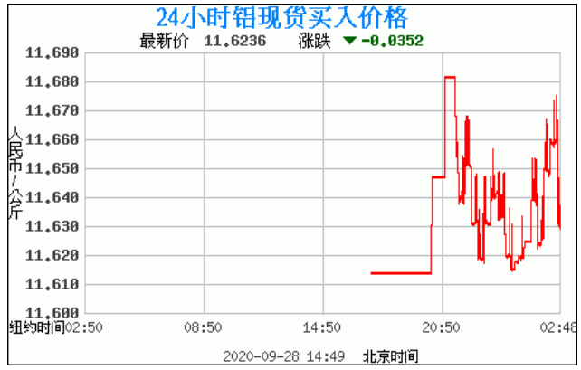 铝锭价格走势图今日最新铝锭行情(2020年9月28日) 今日最新铝锭行情:11.6236 备注:以上钯金价格仅供参考,请以官方价格为准。