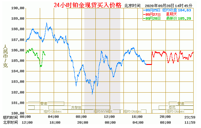 铂金价格走势图今日最新铂金行情(2020年9月28日) 今日最新铂金行情:185.29 备注:以上铂金价格仅供参考,请以官方价格为准。