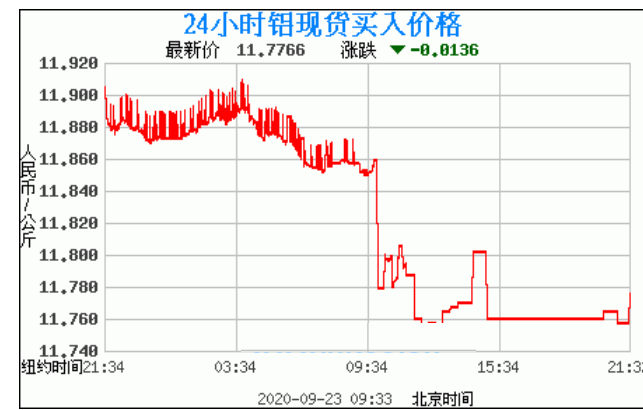 铝锭价格走势图今日最新铝锭行情(2020年9月23日) 今日最新铝锭行情:11.7766 备注:以上钯金价格仅供参考,请以官方价格为准。