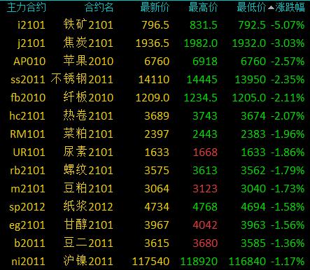 9月16日讯国内期货市场收盘,商品期货多数下跌,能源板块涨幅居前,原油期货涨超3%,燃油、液化石油气、郑煤涨超1%。黑色系大跌,铁矿大跌超5%,焦炭跌超3%,苹果、不锈钢跌超2%。 上周全国线螺市场价格连续小幅阴跌,整体下跌10—30元/吨。上周周初起期螺便一路振荡下跌,打击厂商信心,加上下游