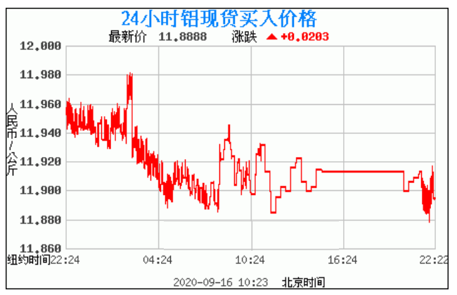 铝锭价格走势图今日最新铝锭行情(2020年9月16日) 今日最新铝锭行情:11.8888 备注:以上钯金价格仅供参考,请以官方价格为准。