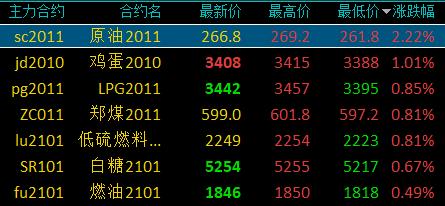 YX原油期货收盘报价(2020/9/15) 合约月份开盘价最高价最低价收盘价涨跌结算价成交量 20年10月37.2838.5737.0638.39+1.0238.28338,553 20年11月37.6038.8237.3638.64+.9938.55212,206 20年12月38.0739.1837.7939.03+.9438.93134,268 21年01月38.6039.6138.29A39.47+.9139.3844,530 21年02月39.114
