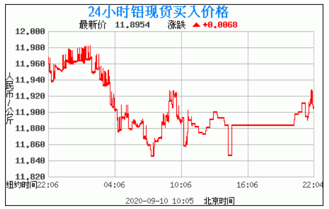 铝锭价格走势图今日最新铝锭行情(2020年9月10日) 今日最新铝锭行情:11.8954 备注:以上钯金价格仅供参考,请以官方价格为准。