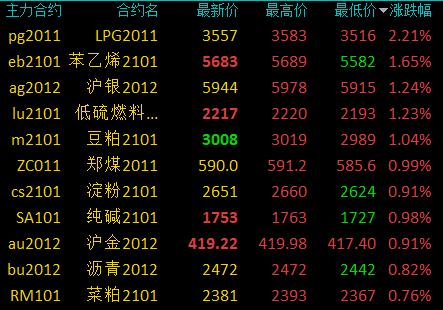 9月10日讯国内期货市场开盘,商品期货互有涨跌。LG、沪银等涨超1%,沪铜、郑醇等小幅上涨;棕榈、苹果、鸡蛋跌超1%,白糖、郑棉等小幅下跌。