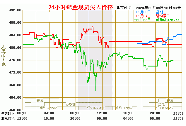钯金价格走势图今日最新钯金行情(2020年9月9日) 今日最新钯金行情:475.74 备注:以上钯金价格仅供参考,请以官方价格为准。