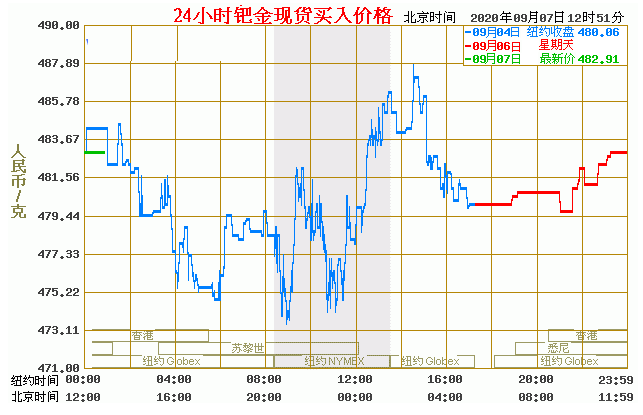 钯金价格走势图今日最新钯金行情(2020年9月7日) 今日最新钯金行情:482.91 备注:以上钯金价格仅供参考,请以官方价格为准。