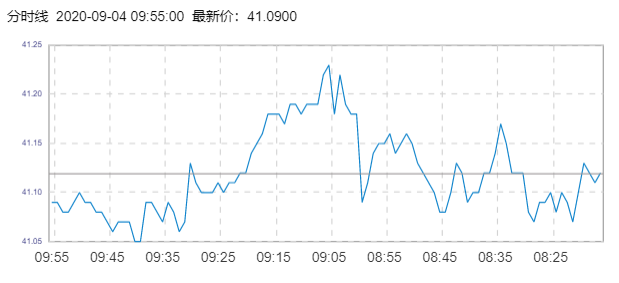 WTI原油价格实时(2020年9月4日) 名称 最新价 涨跌 涨跌幅% 开盘价 昨收价 最高价 最低价 WTI 41.07