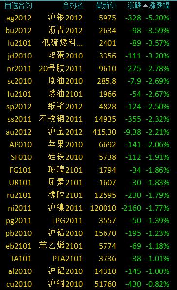 9月3日讯国内期货市场收盘,商品期货多数收跌,沪银大跌超5%,沥青、鸡蛋跌超3%,苹果、原油、R、纸浆、燃油、沪金跌超2%,玻璃、沪镍、橡胶、尿素跌逾1%。焦炭、红枣涨超2%,焦煤、豆油、棕榈涨超1%。 外盘表现太优异油脂火热行情爆棚 D毛棕榈油连升5日以及美豆延续强势提振国内油脂市场,棕榈油及豆