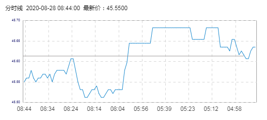 布伦特原油价格实时(2020年8月28日) 名称 最新价 涨跌 涨跌幅% 开盘价 昨收价 最高价 最低价 布伦特 45.