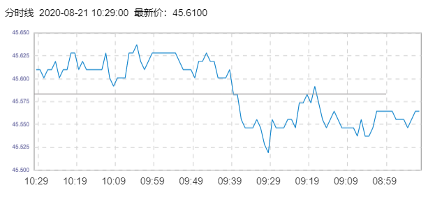 布伦特原油价格实时(2020年8月21日) 名称 最新价 涨跌 涨跌幅% 开盘价 昨收价 最高价 最低价 布伦特 45.