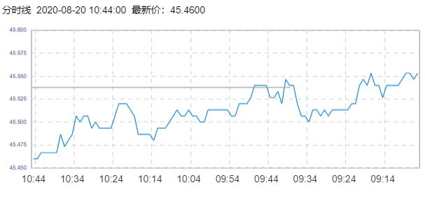 国际原油价格实时走势图(2020年8月20日) WTI原油走势图 布伦特原油走势图