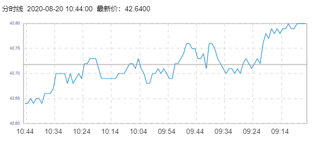 WTI原油价格实时(2020年8月20日) 名称 最新价 涨跌 涨跌幅% 开盘价 昨收价 最高价 最低价 WTI 42.95