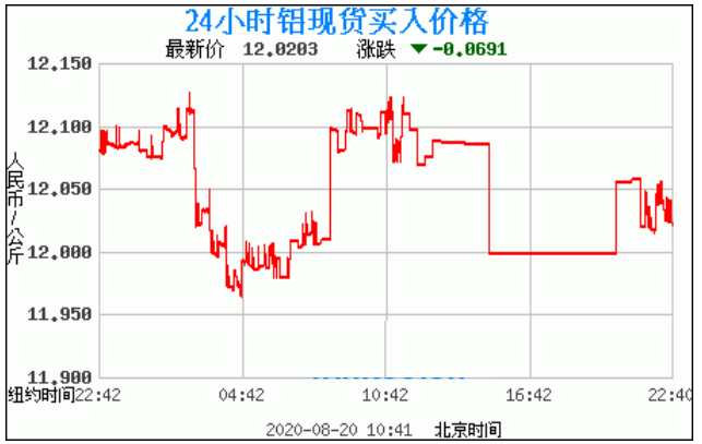 铝锭价格走势图今日最新铝锭行情(2020年8月20日) 今日最新铝锭行情:12.0203 备注:以上钯金价格仅供参考,请以官方价格为准。