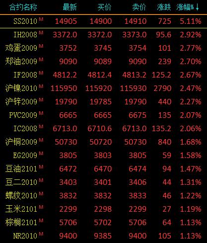 8月17日讯国内期货市场收盘,商品期货多数收涨,不锈钢大涨超5%,菜油、鸡蛋、沪镍、沪锌涨超2%;豆油、沪铜、玉米、棕榈油等涨超1%。苹果跌超2%,锰硅、尿素跌超1%。 ytl数据显示,本周无锡和佛山300系不锈钢库存小幅回升,其中冷轧库存出现一定幅度的累升,热轧库存小幅下降。当前不锈钢库存